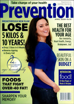 If you have always been wondering about the secret behind Preity Zinta’s glowing face and bubbly smile, grab a copy of the April issue of the magazine ‘Prevention’ where the chirpy actress reveals all about her fitness routine, IPL, her diet, favorite foods, and the secrets behind her energy and her motivation in life. The cover page of the magazine features the actress in a bright blue and the inside pages of the mag covers the candid interview with this chirpy chick where she describes herself as ‘’I am happy with what I have'’.